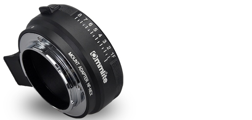 Commlite objektivadapter CM-NF-NEX, gör så att du kan ansluta Nikon objektiv (inklusive de flesta av Nikons objektivtyper som: G, F, AI, S, D fästen) till Sony NEX-kamera eller videokamera. Bländaren kan ändras manuellt via 16 exakta stopp. Fokus till oändlighet är möjlig.