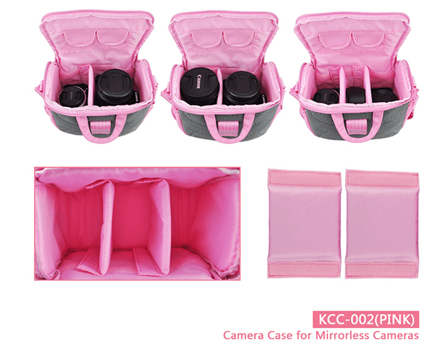 Kiwifotos KCC-002 (rosa) är en modern kameraväska av hög kvalitet, perfekt för dig som vill bära din kamera och tillbehör på ett tryggt och stilrent sätt. Väskan har en skyddande inredningspåse som ger stötdämpning och innehåller två vadderade skiljeväggar som skapar tre separata, justerbara sektioner för din fotoutrustning. På utsidan finns en nätficka på varje sida, idealisk för mindre tillbehör som batterier eller filter, samt en frontficka med dragkedja för ytterligare förvaring. Invändigt finns även en extra ficka i locket.